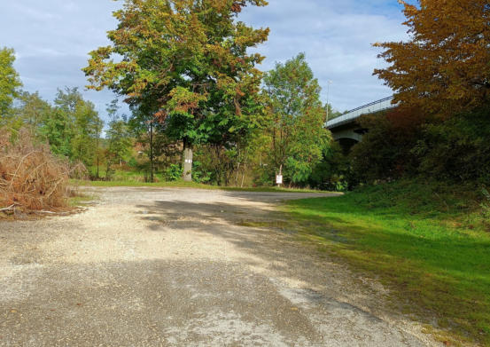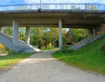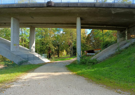 vor dem Baum, rechts unter der Brücke durch
